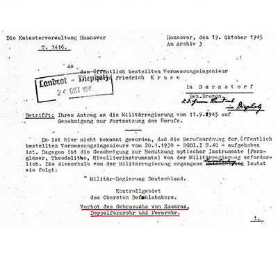 Schon im Altertum unterstützten die Geometer den Staat bei der Erfassung und Ortung von Grund und Boden. Die preußischen „Landmesser“ wurden bereits 1704 per Reglement mit staatlichen Aufgaben betraut - also etwa 150 Jahre vor der Entstehung der ersten Katasterämter. Das heutige Berufsrecht der Länder überträgt den Öffentlich bestellten Vermessungsingenieuren als Nachfolger der „Landmesser“ ebenfalls hoheitliche Aufgaben. In einigen Bundesländern wie in Niedersachsen sind sie zudem Träger eines öffentlichen Amtes.