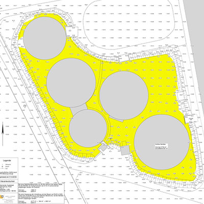 ![]() Die Havarievolumenberechnung muss bei jedem Bauwerk durchgeführt werden, dessen Inhalt im Falle eines Schadens aufgefangen werden muss. So ist bspw. beim Bau eines Erdwalls rund um eine Biogasanlage eine Haverievolumenberechnung durchzuführen. Hierbei ist die auslaufende Masse bei Havarie der Biogasanlage entscheidend für die Größe bzw. Höhe des Walls. |