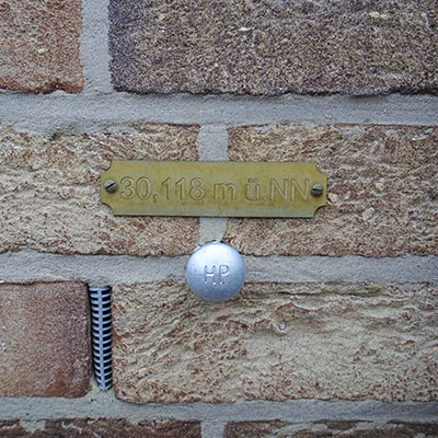 ![]() Höhenfestpunkte sind markierte Punkte, die höhenmäßig bestimmt sind. Höhenfestpunkte werden für die Vermessung von Objekten bzgl. der Höhe herangezogen. |