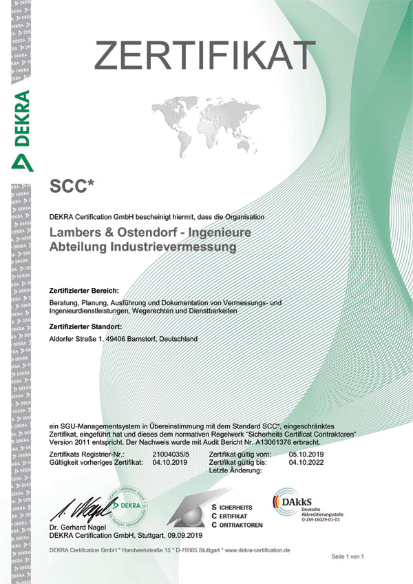 Alle Unterweisungen und Lehrgänge werden in einem persönlichen Sicherheitspass dokumentiert. Darüber hinaus sind unsere Messfahrzeuge inkl. der Inneneinbauten TÜV-zertifiziert, unsere Ausstattung, Arbeits- und Umgebungsbedingungen werden regelmäßig durch eine externe Fachkraft geprüft.